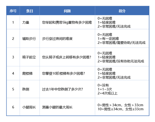 SARC-calf评分是一种改良版的SARC-F评分,即增加一项客观指标——小腿围周长。